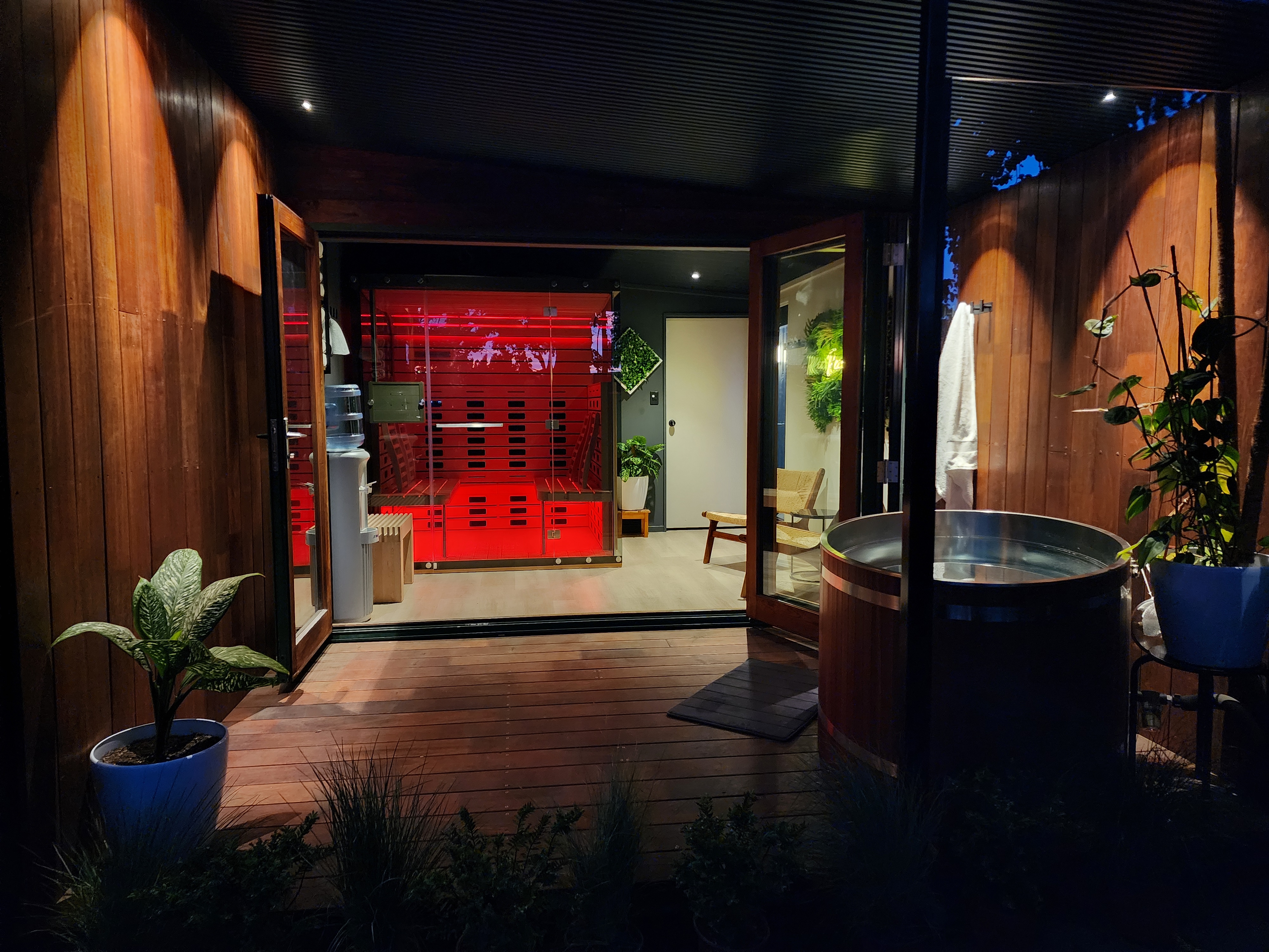 Recover is our space for slowing down, recharging and feeling incredible again. Inside is our Found Space full spectrum infrared sauna with light therapy. Outside on the sheltered deck is our cold plunge, surrounded by fresh air and views of the garden. It is the perfect reset before or after training, or a powerful stand alone wellbeing session.